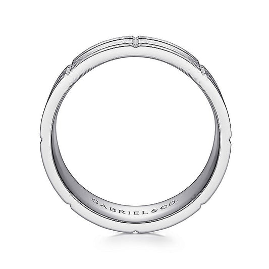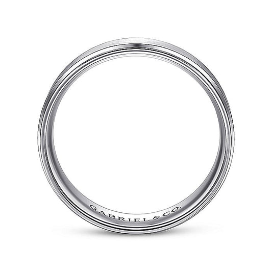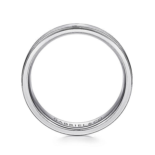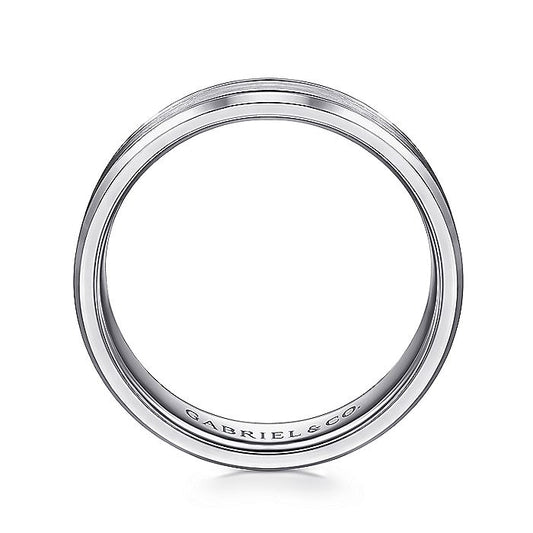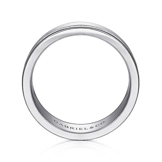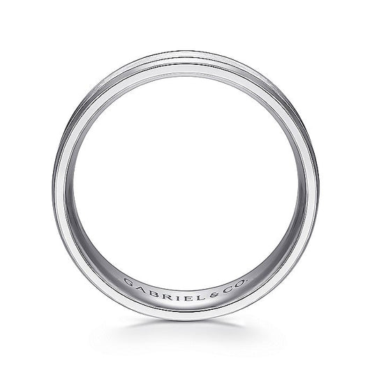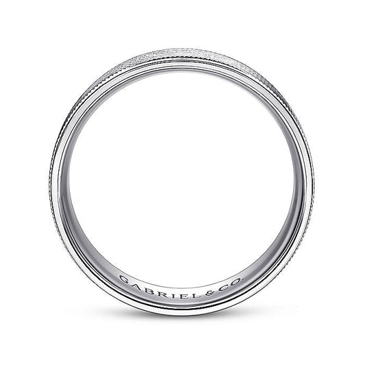Gabriel & Co. MBH0133-70W4JJJ 14K White Gold 7mm - Satin Milgrain Channel Polished Edge Men's Wedding Band