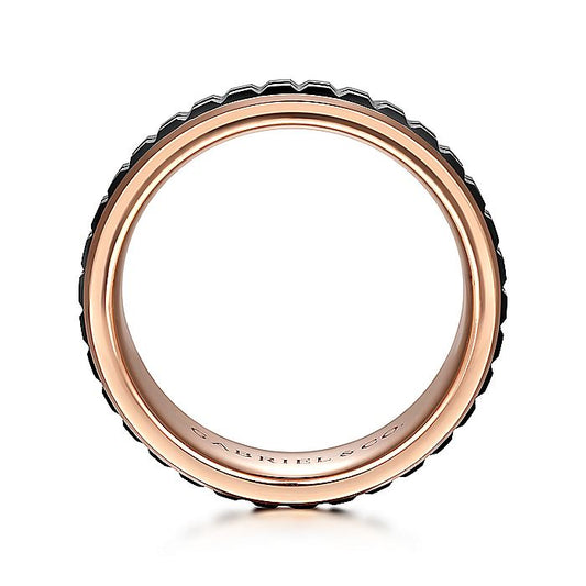 Gabriel & Co. MBH0171-70K4JCB 14K Rose Gold-Black Ceramic 7mm - Center Cubes and Beveled Edge Men's Wedding Band