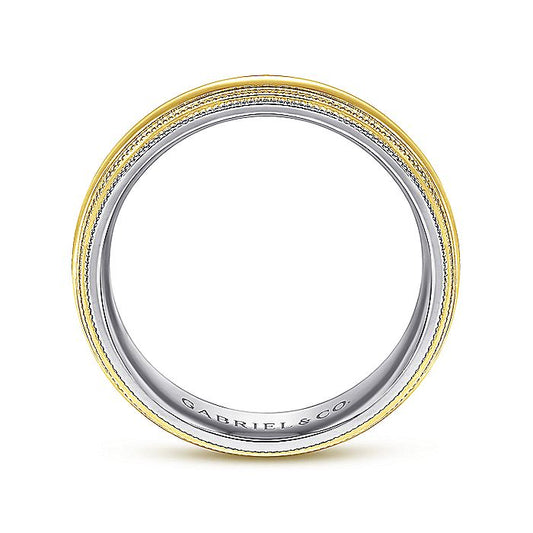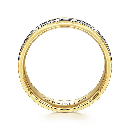 Gabriel & Co. MBH0173-60M4JJJ 14K White-Yellow Gold 6mm - Polished Center and Milgrain Edge Men's Wedding Band