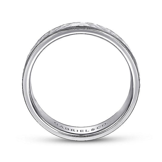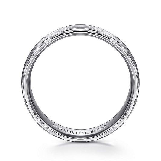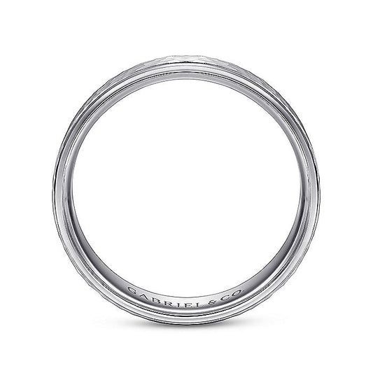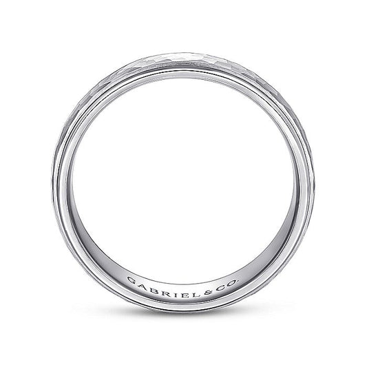 Gabriel & Co. MBM0112-60W4JJJ 14K White Gold 6mm - Hammered Center and Polished Edge Men's Wedding Band