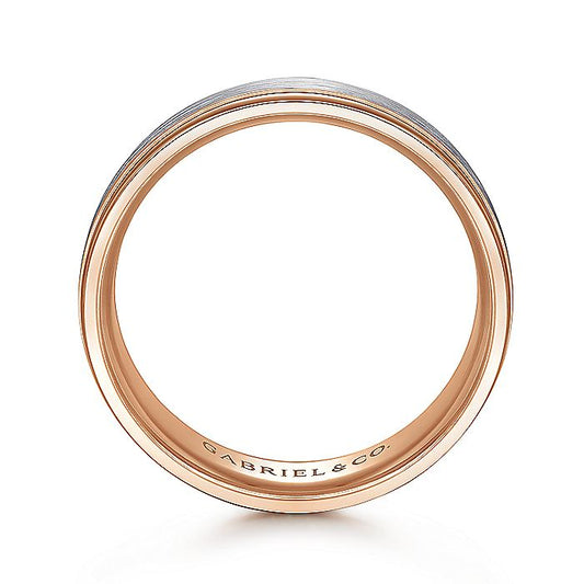 Gabriel & Co. MBM0100-70T4JJJ 14K White-Rose Gold 7mm - Satin Finish Center and Polished Edge Men's Wedding Band