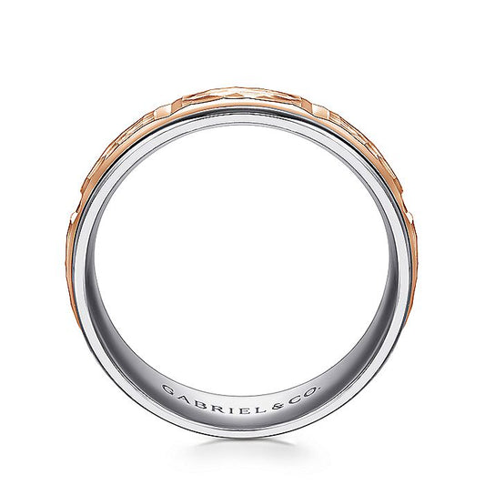Gabriel & Co. MBM0116-70T4JJJ 14K White-Rose Gold 7mm - Hammered Center and Rounded Edge Men's Wedding Band