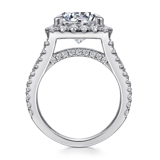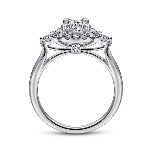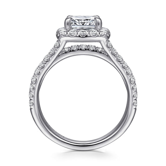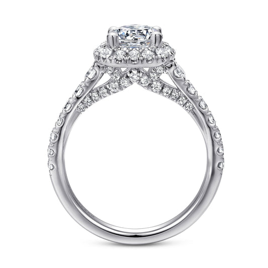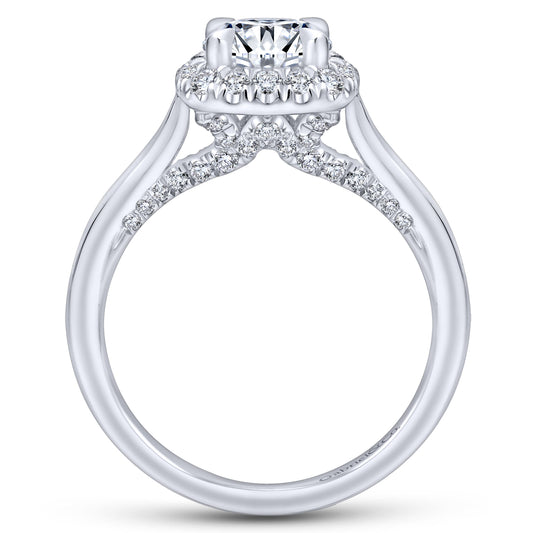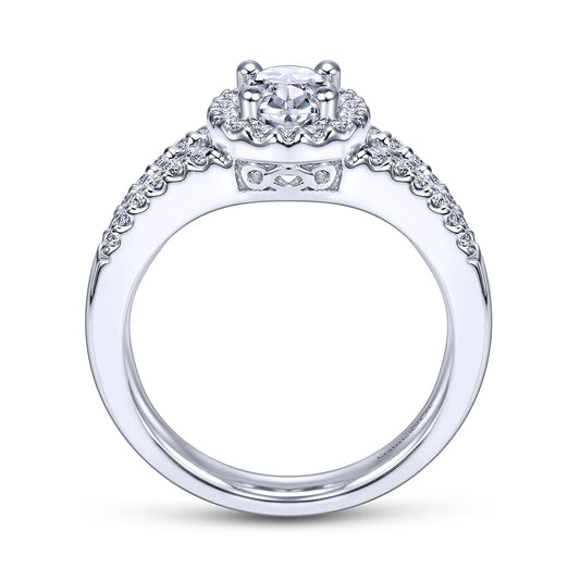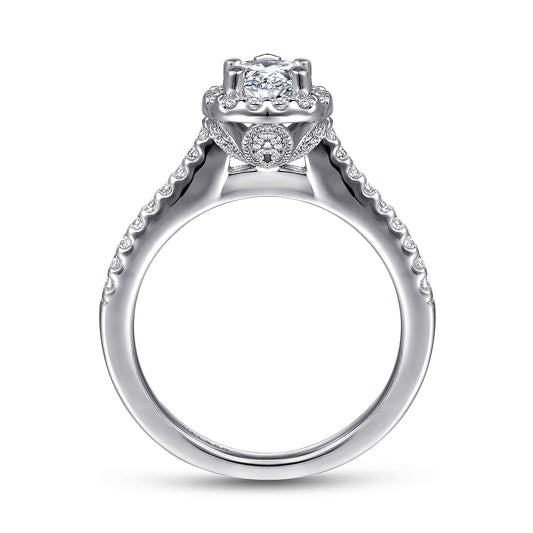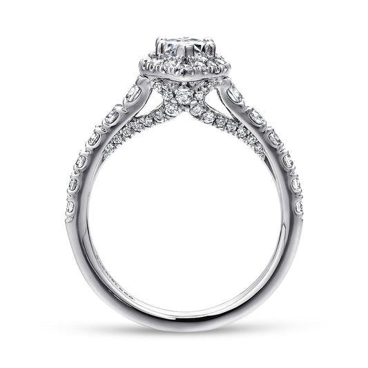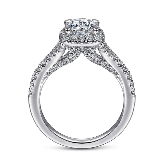 14K White Gold Cushion Halo Diamond Engagement Ring