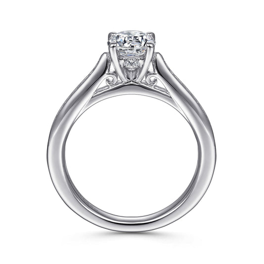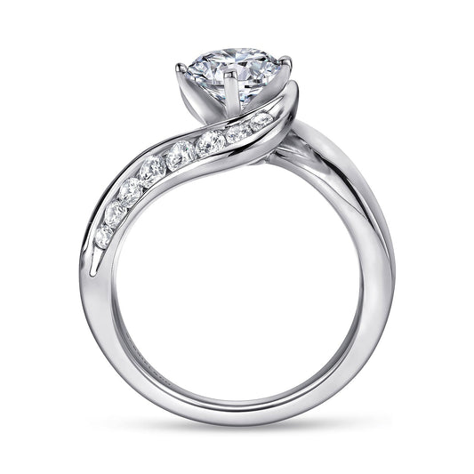 14K White Gold Round Bypass Diamond Channel Set Engagement Ring