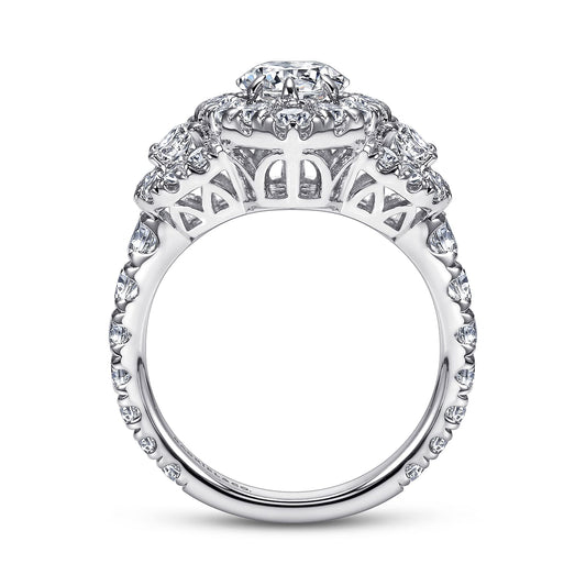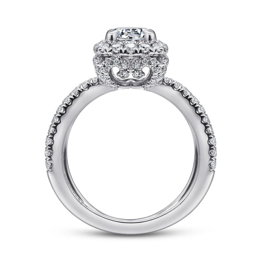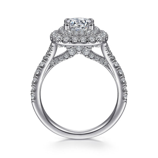 14K White Gold Cushion Double Halo Round Diamond Engagement Ring