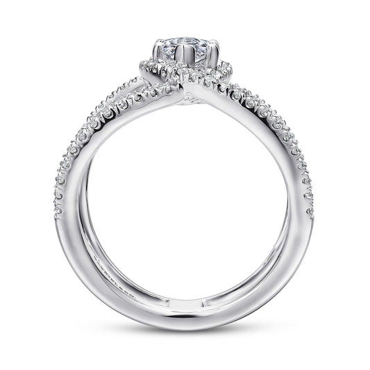 14K White Gold Round Bypass Diamond Engagement Ring