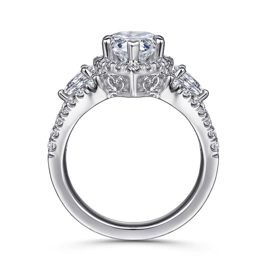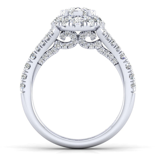 14K White Gold Pear Shape Halo Diamond Engagement Ring