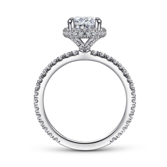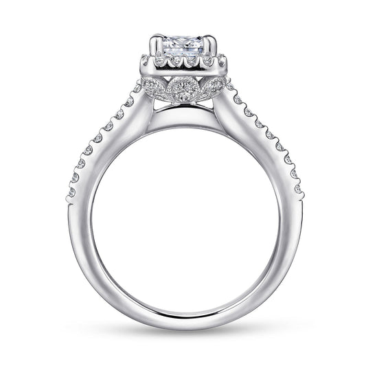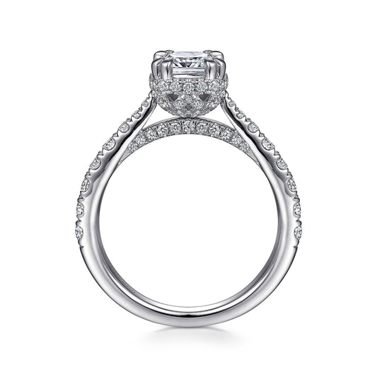 14K White Gold Hidden Halo Cushion Cut Diamond Engagement Ring