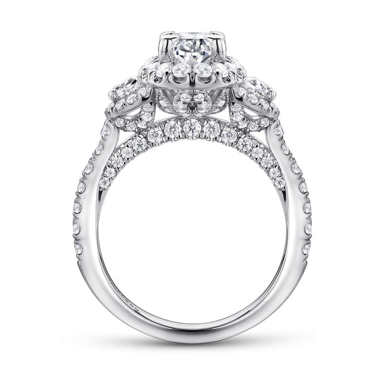 14K White Gold Oval Three Stone Halo Diamond Channel Set Engagement Ring