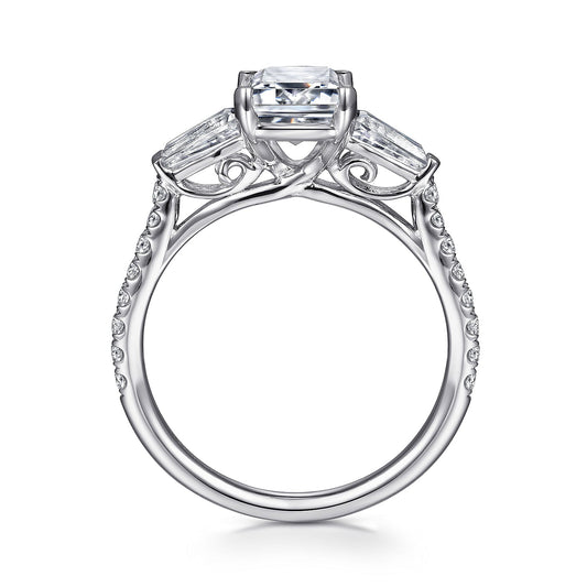 14K White Gold Emerald Cut Three Stone Diamond Channel Set Engagement Ring