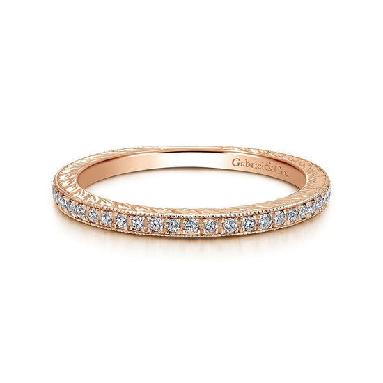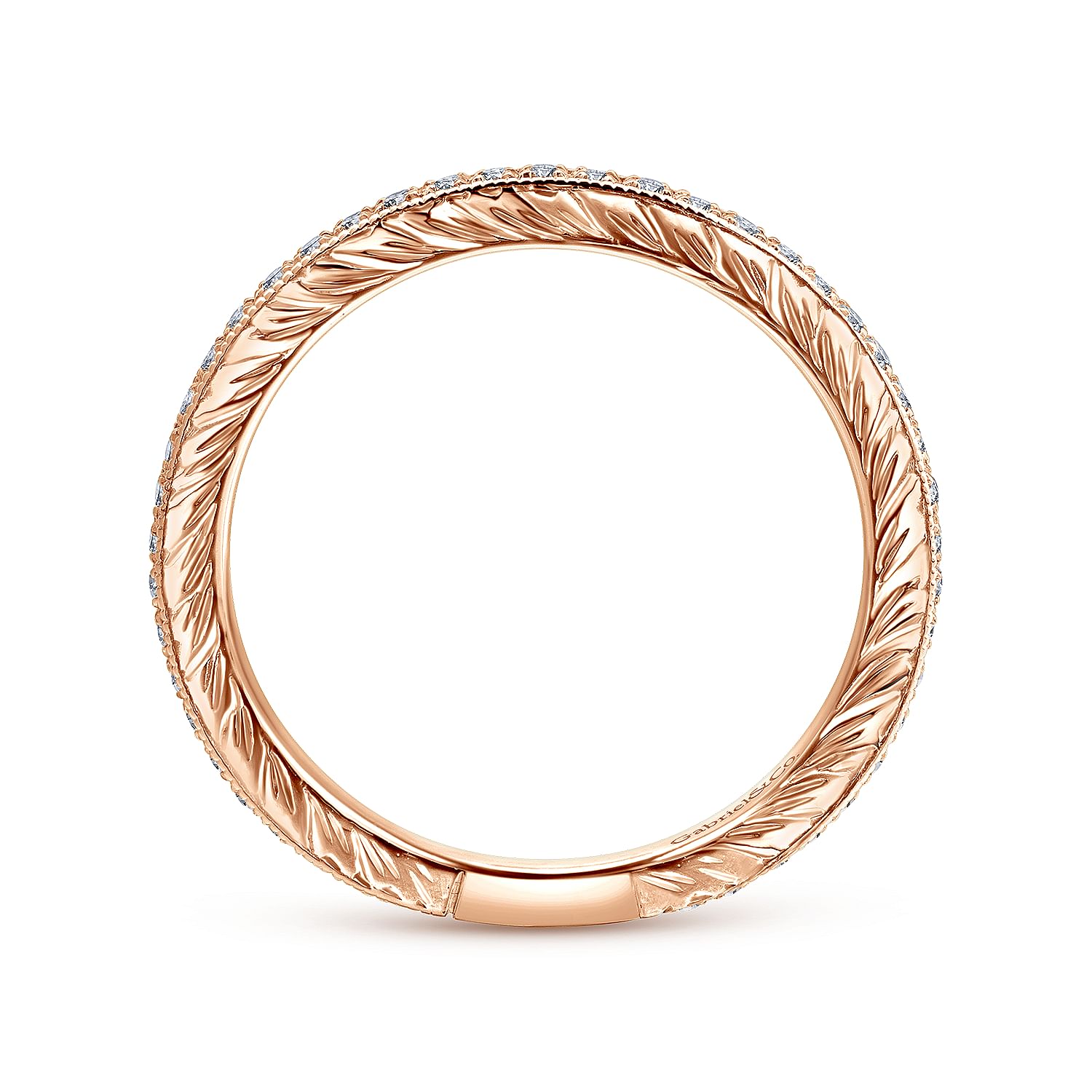 14K Rose Gold Hand Carved Stackable Diamond Ring