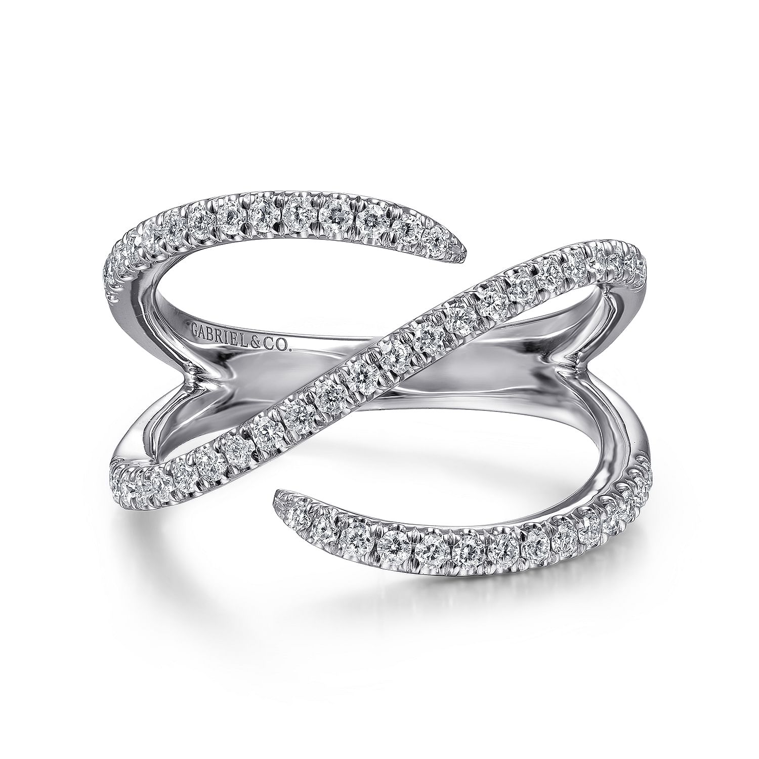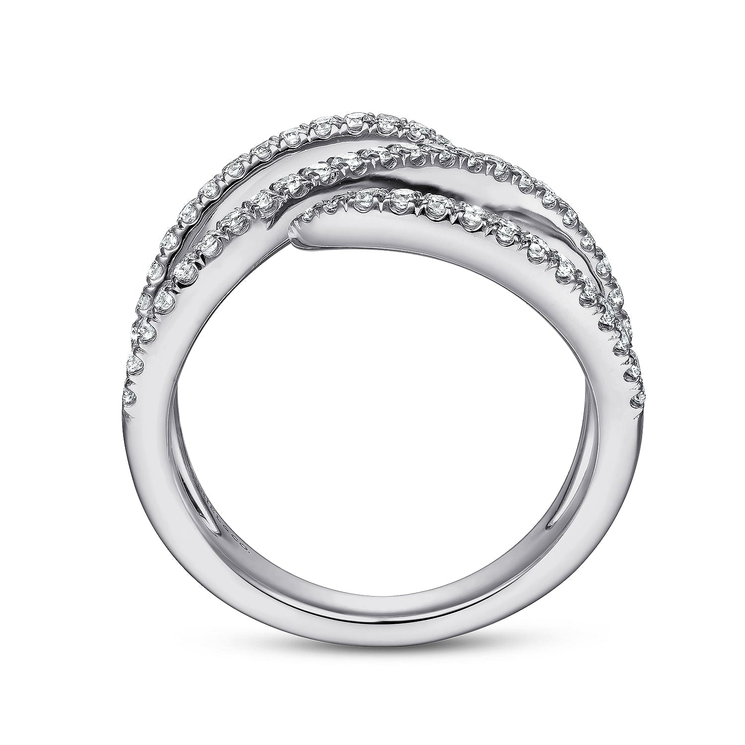 14K White Gold Abstract Diamond Bypass Wrap Ring