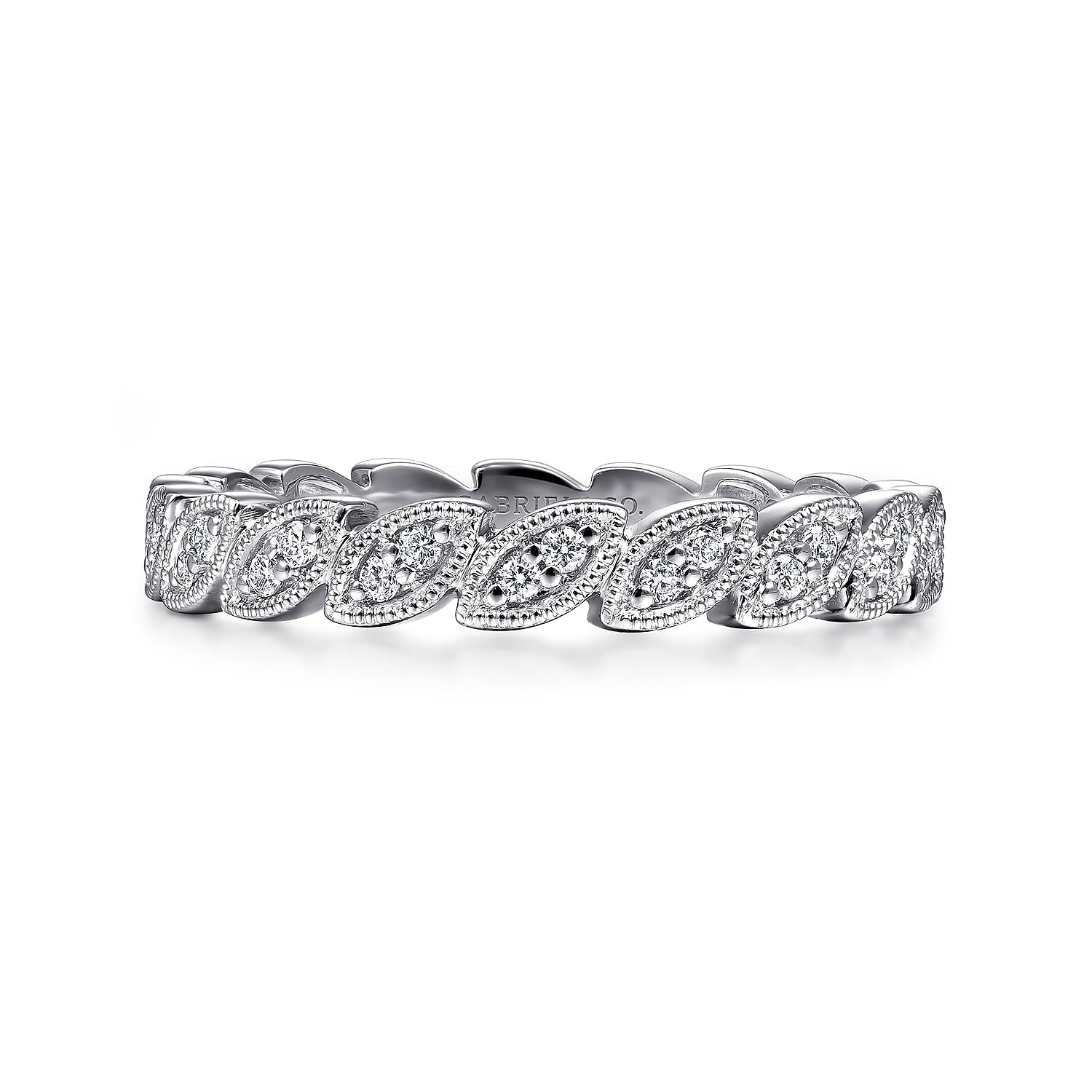 14K White Gold Millgrained Marquise Stackable Diamond Ring