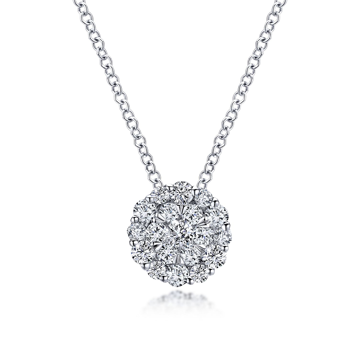 14K White Gold Prong Set Diamond Cluster Pendant Necklace