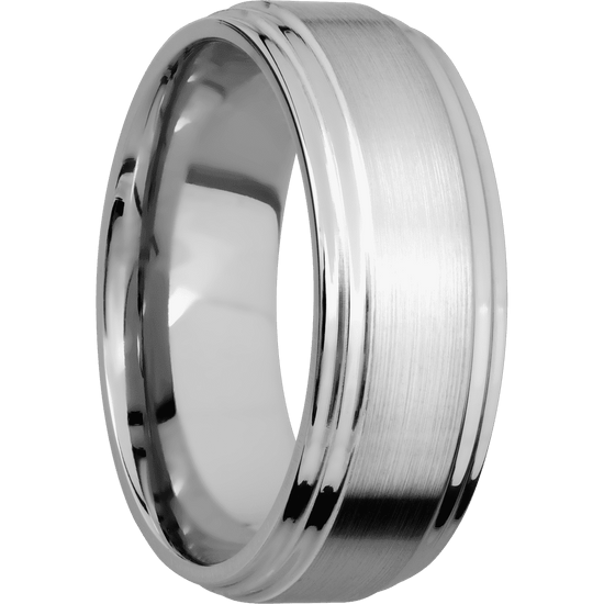 8 mm wide Flat Double Stepped Edges 14K White Gold band.