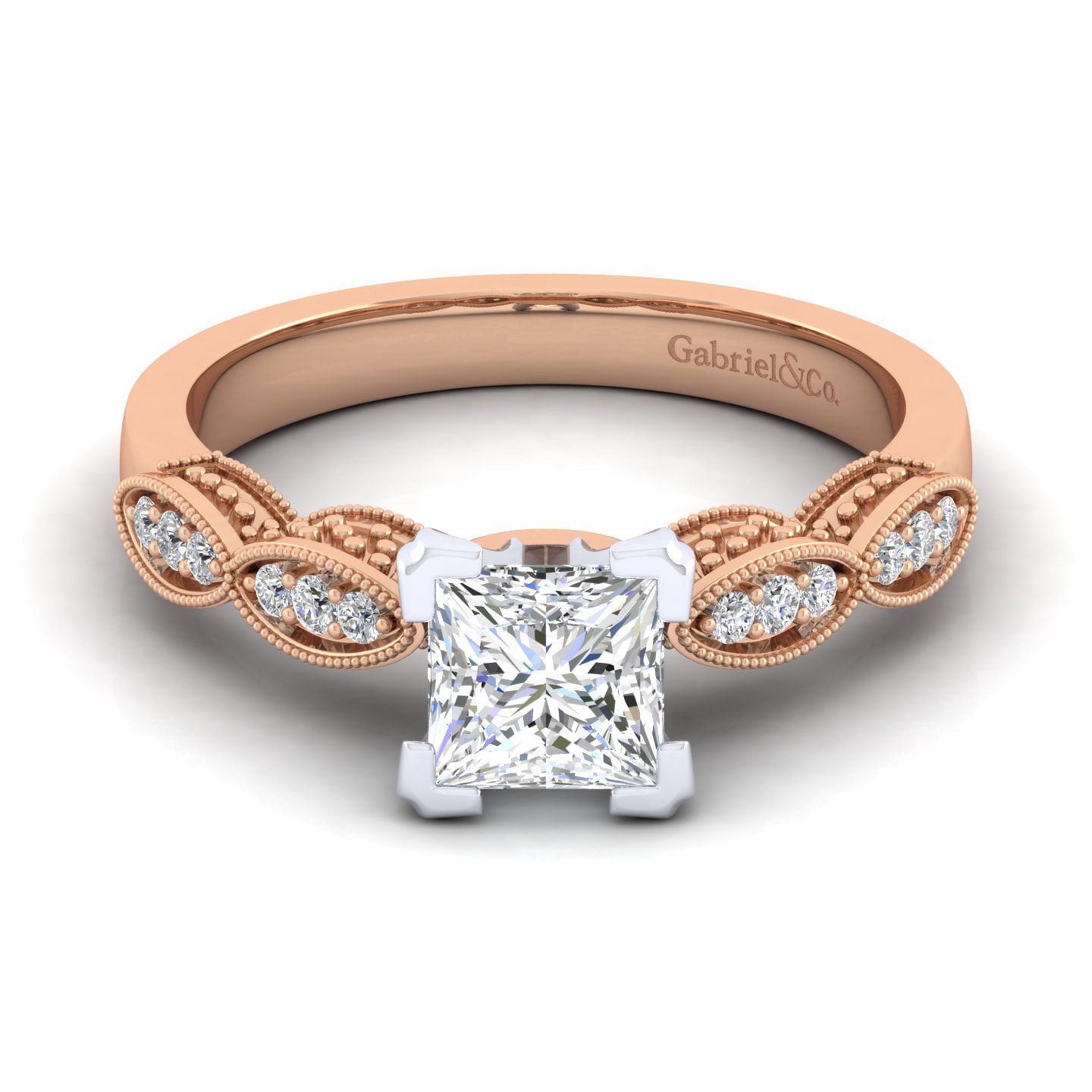 14K White-Rose Gold Princess Cut Diamond Engagement Ring