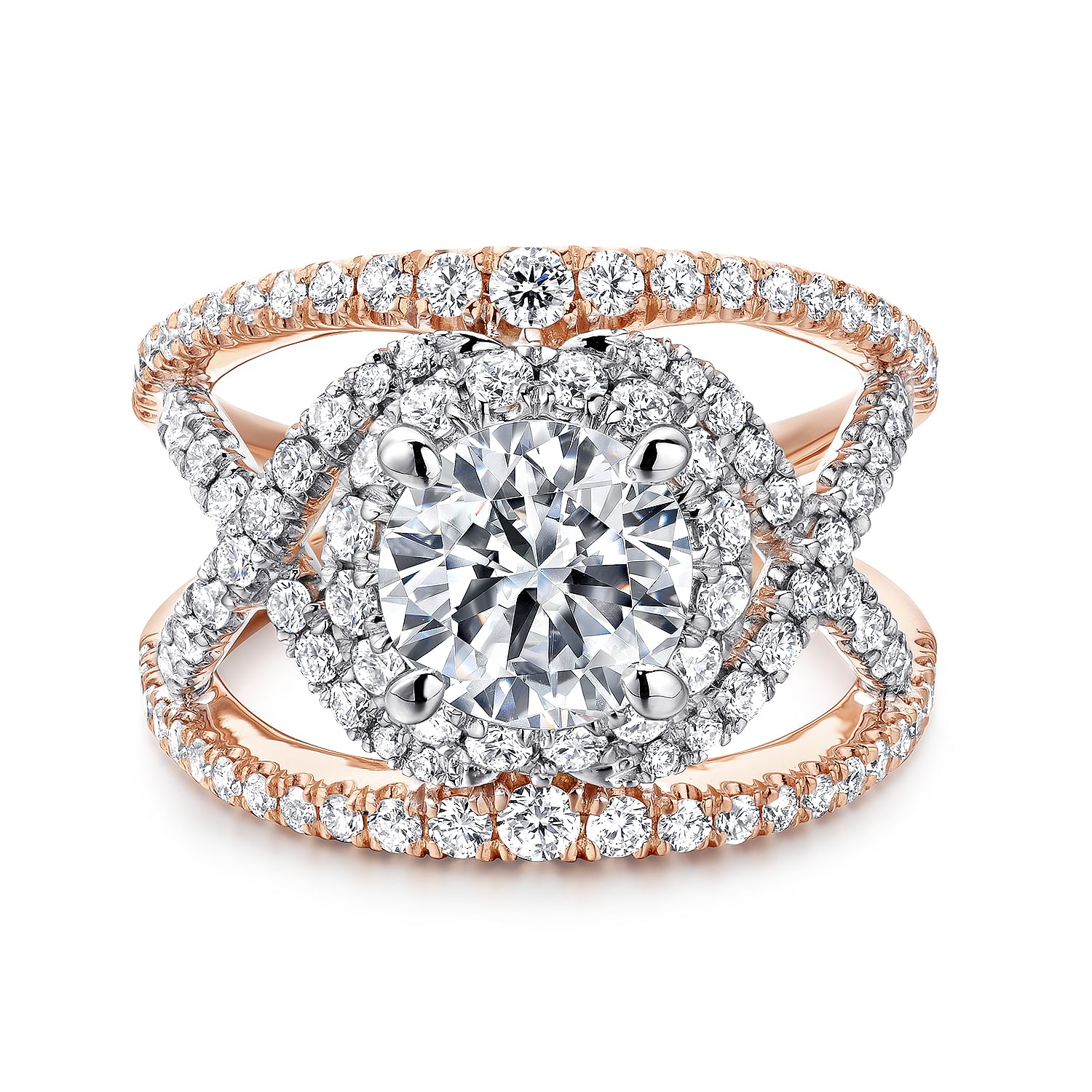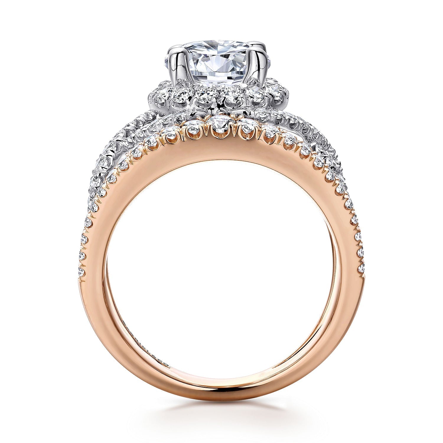 14K White-Rose Gold Round Halo Diamond Engagement Ring