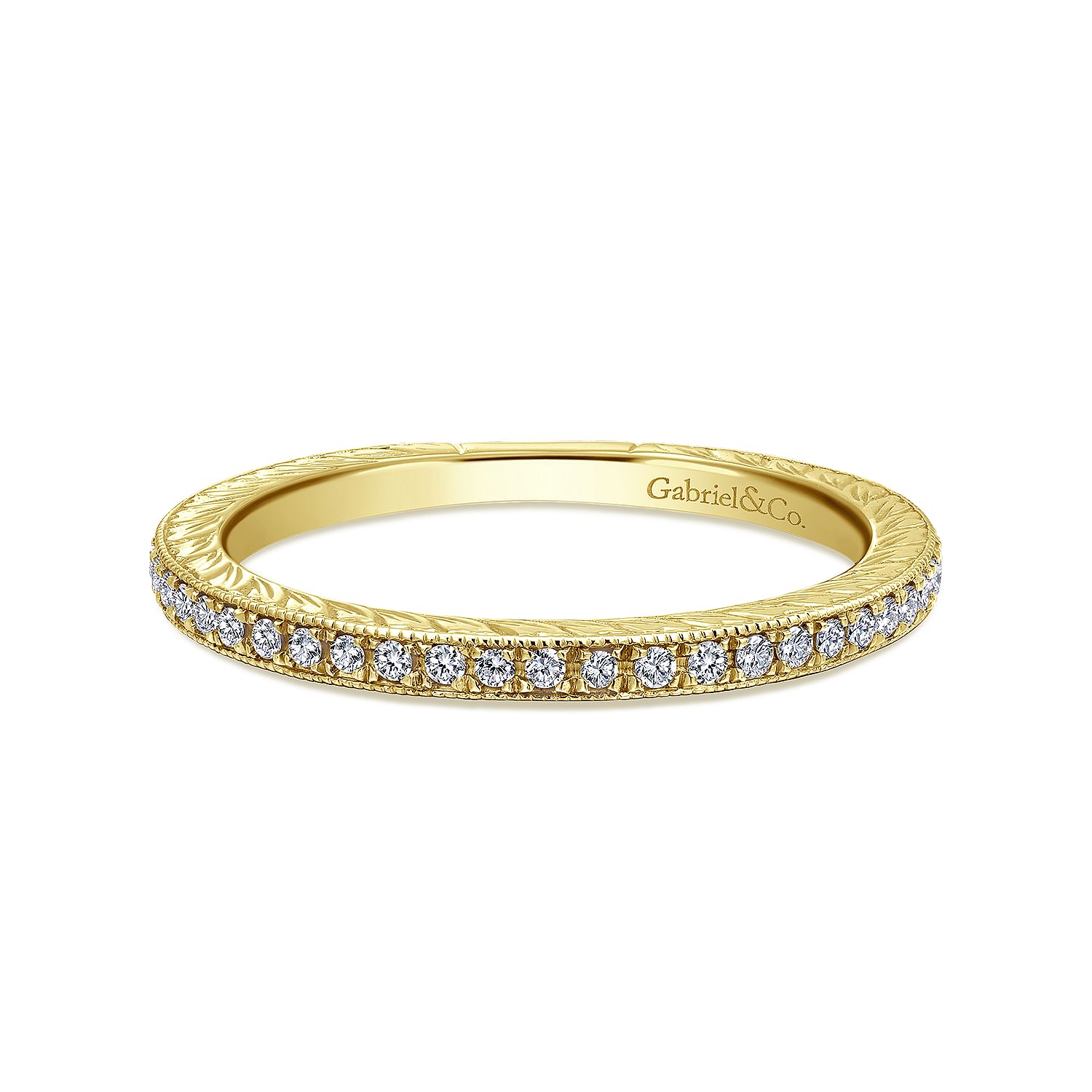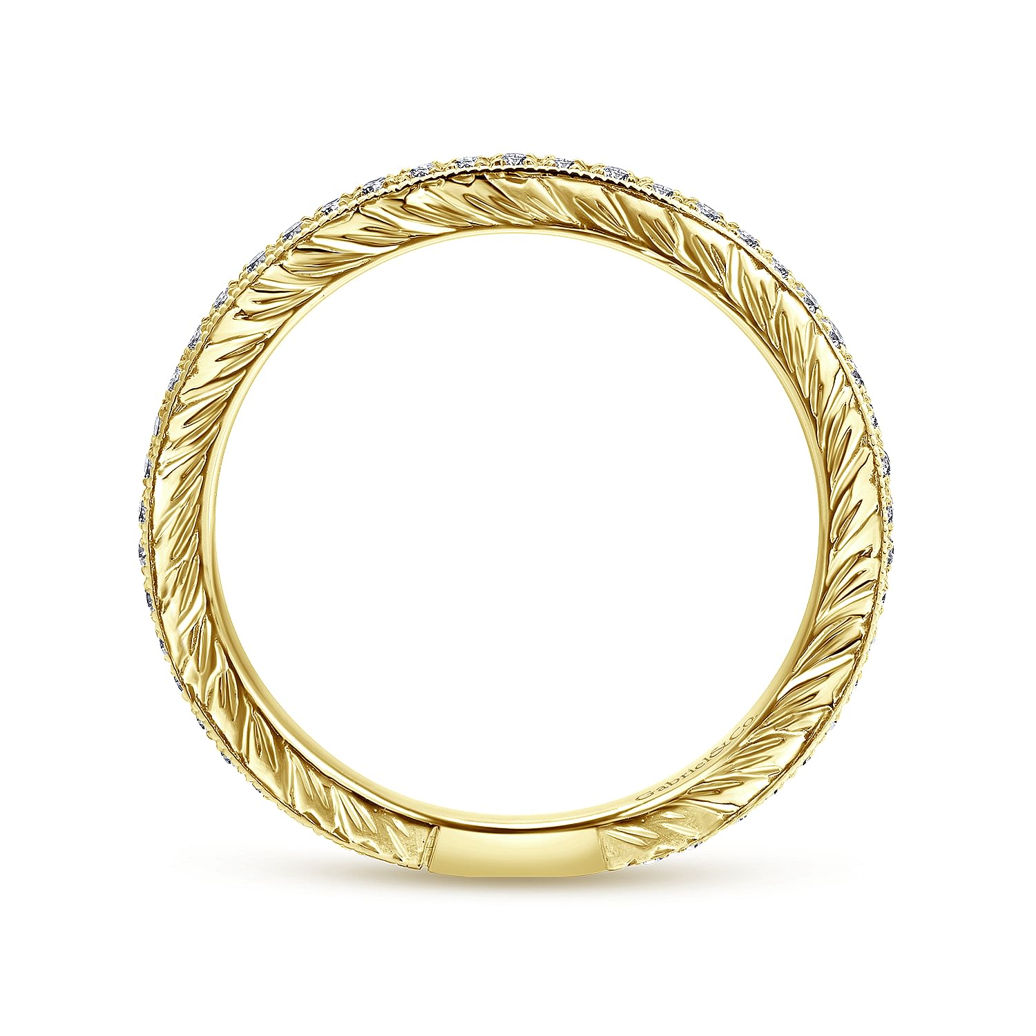 14K Yellow Gold Hand Carved Stackable Diamond Ring