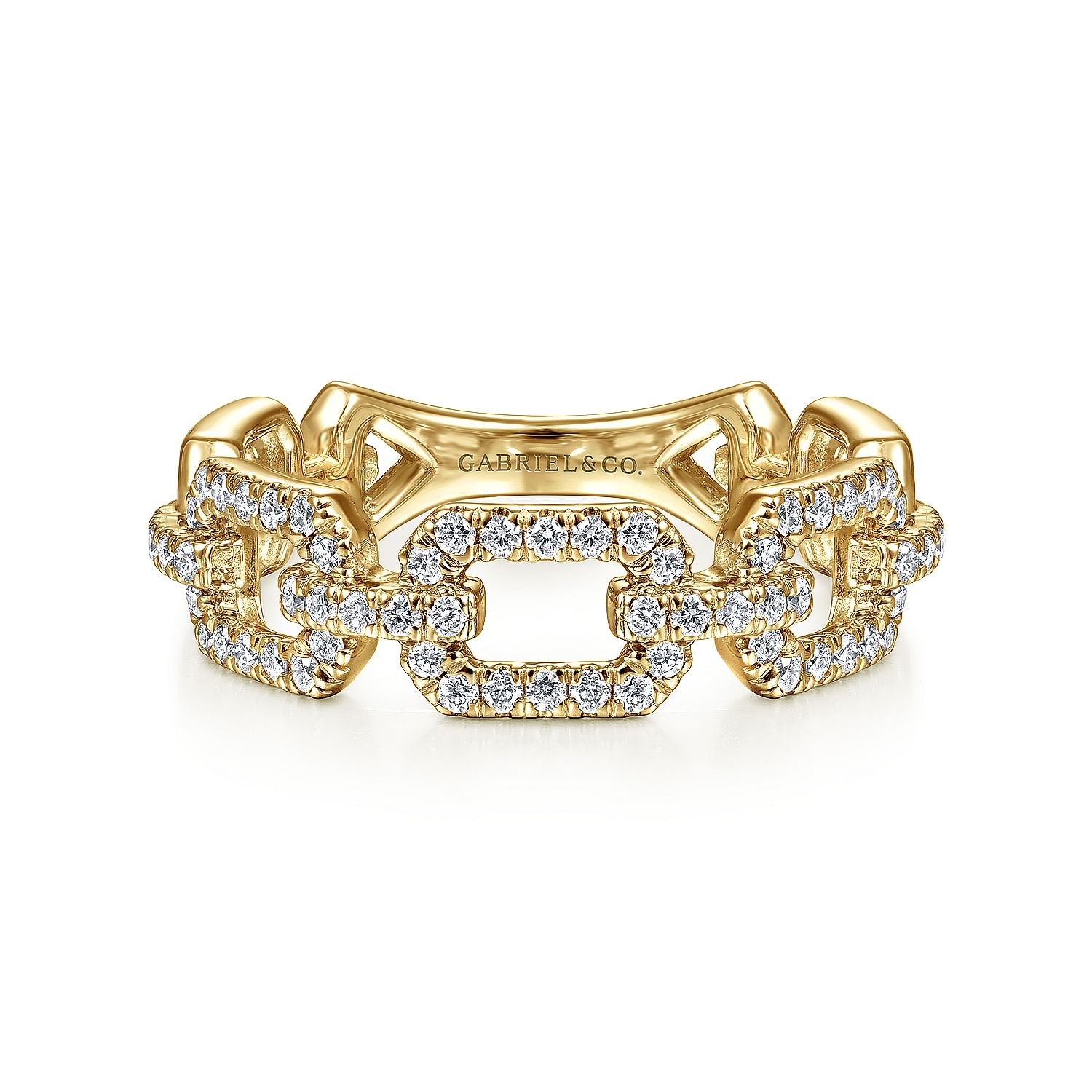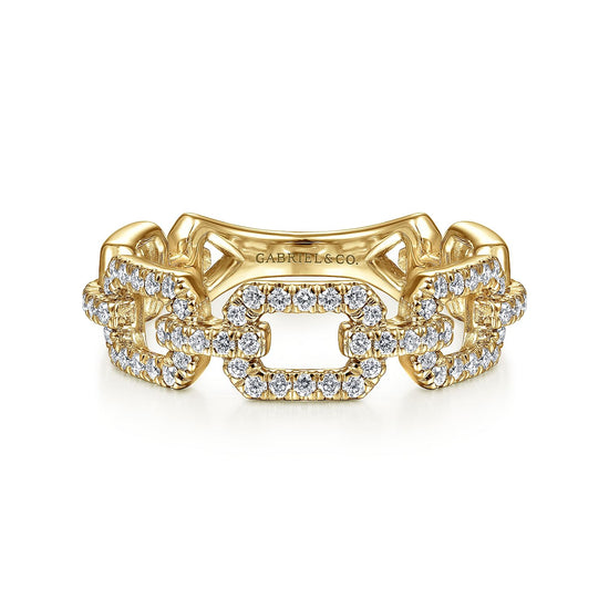 14K Yellow Gold Pavé Diamond Chain Link Stackable Ring Band