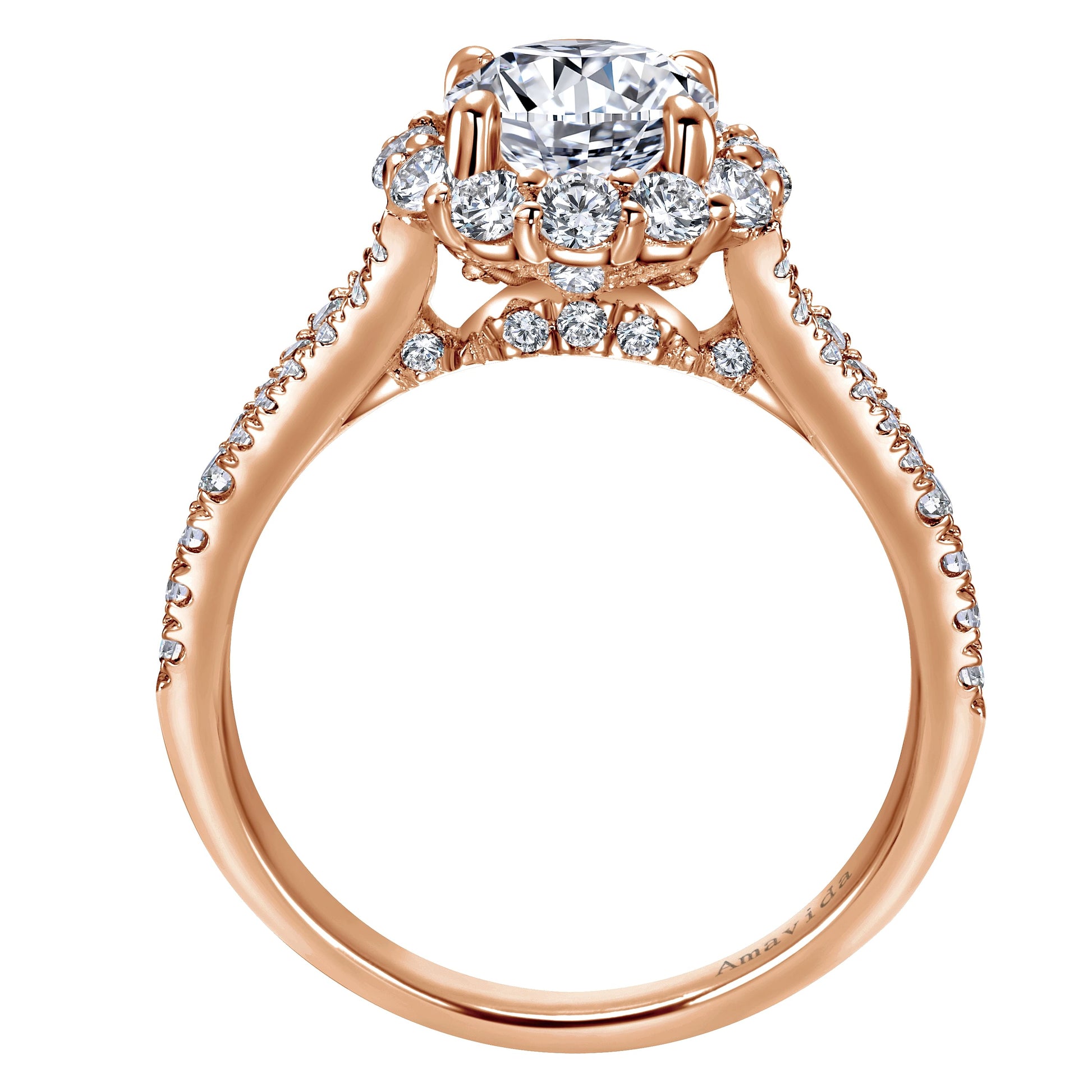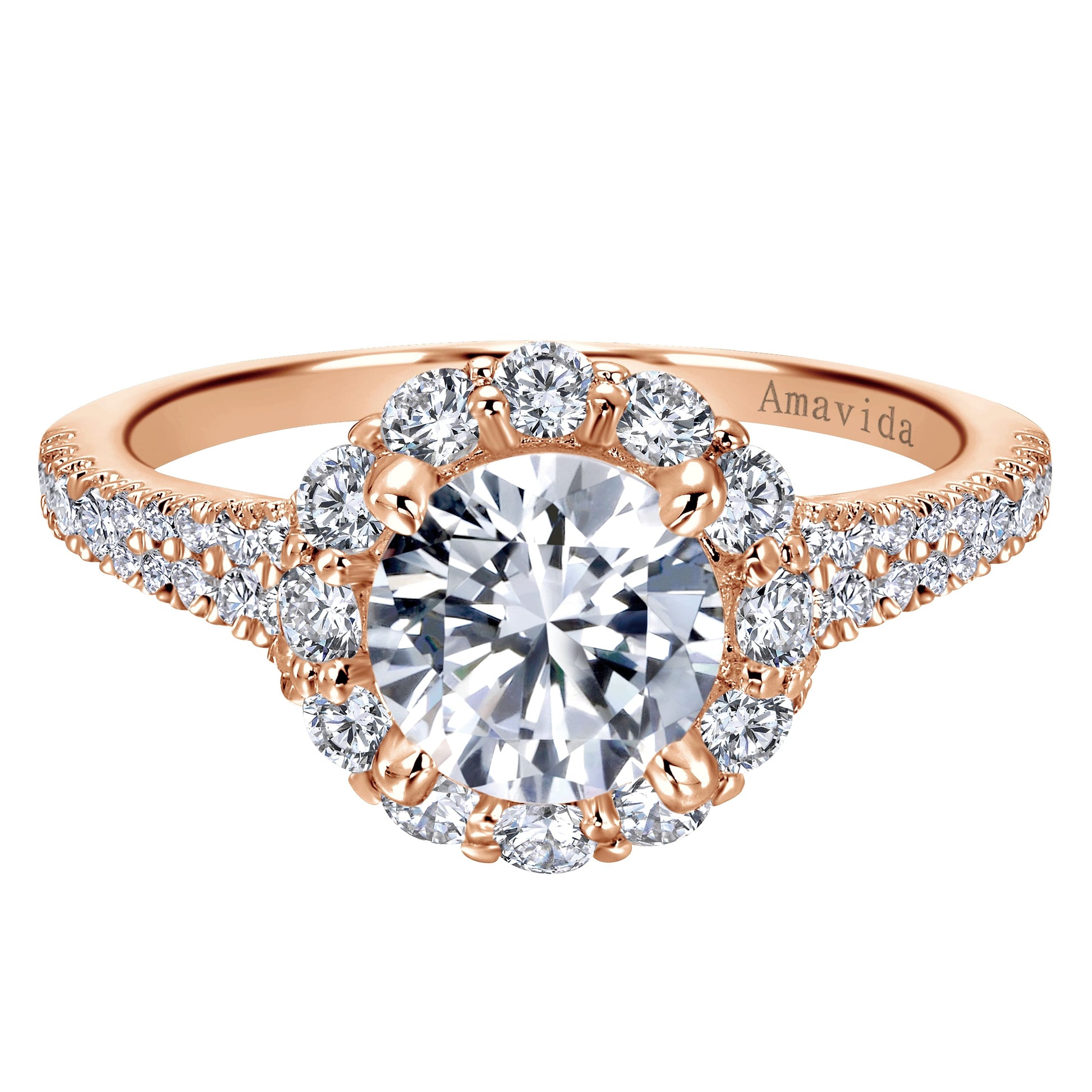 18K Rose Gold Round Halo Diamond Engagement Ring