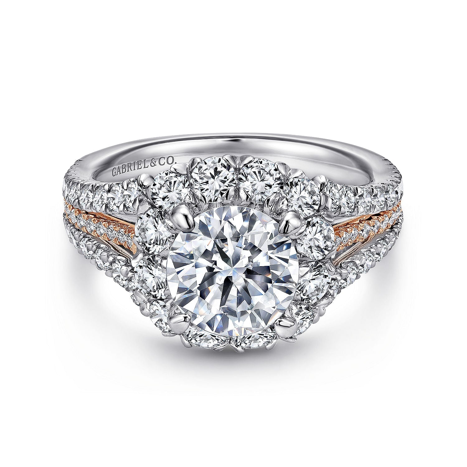 18K White-Rose Gold Round Halo Diamond Engagement Ring