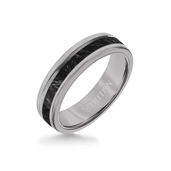 - The contemporary metal Tungsten Carbide offers strength and durability to every design.