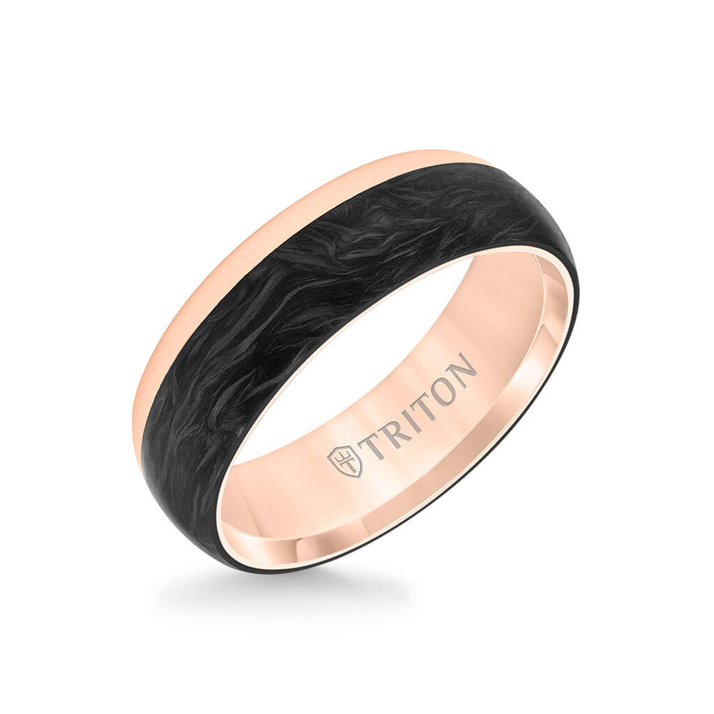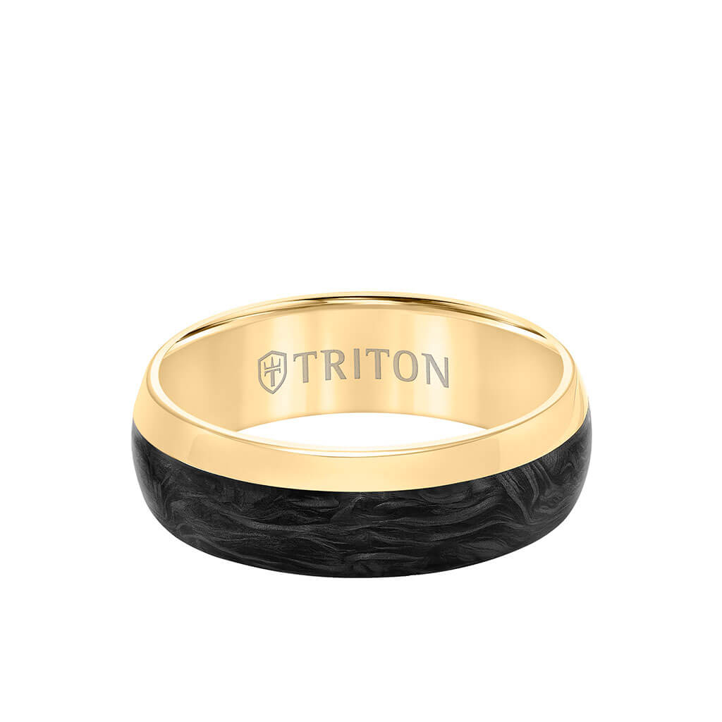 7MM 14K Gold Ring +Forged Carbon - Dome Profile with Asymmetrical Channel