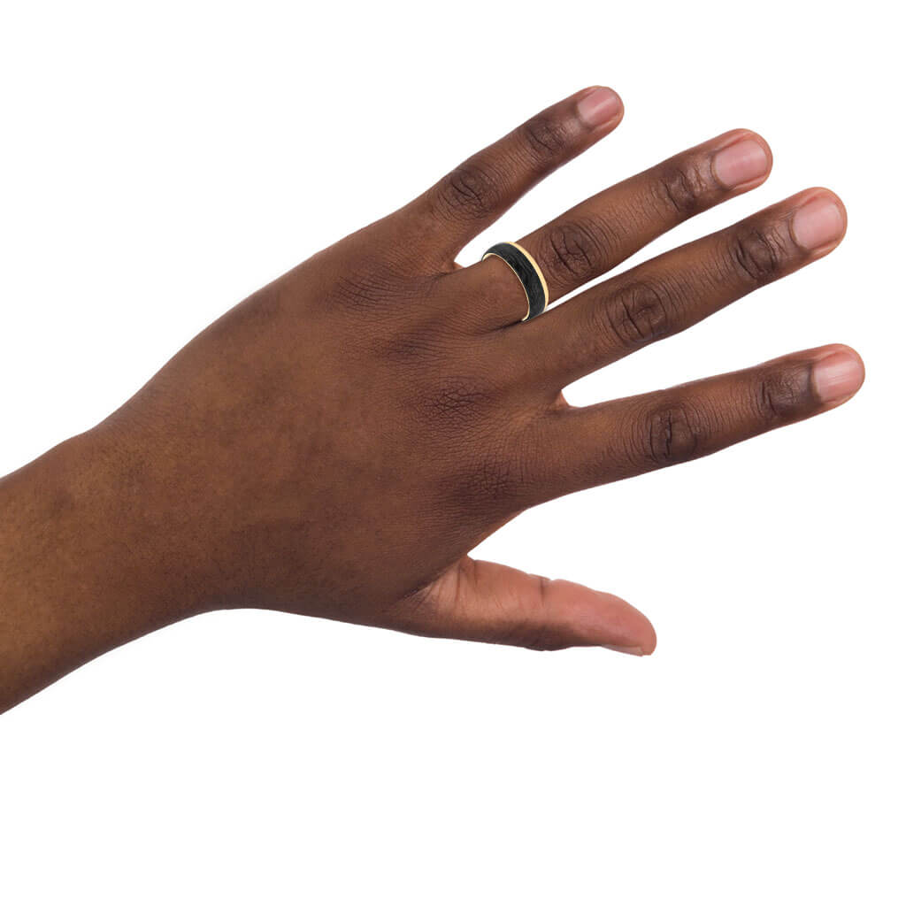 The name Forged Carbon comes directly from how we produce the material: taking carbon fiber, shredding it, then compressing it under heat. The result? A striking marbled pattern that’s subtly different with every single pressing. That ensures a slightly unique pattern in each piece, meaning no two rings are exactly alike. We paired our new Forged Carbon with striking metals to create provocative design combinations that make a fearless statement. Forged Carbon is available with 14K Gold, Titanium and Damascus.
