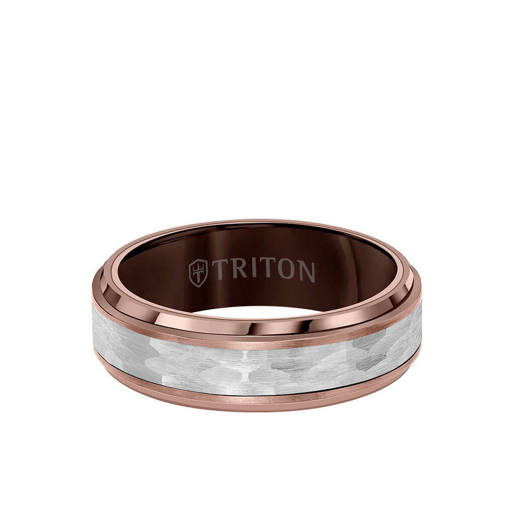 7MM Espresso Tungsten Carbide Ring - Hammered Center and Step Edge