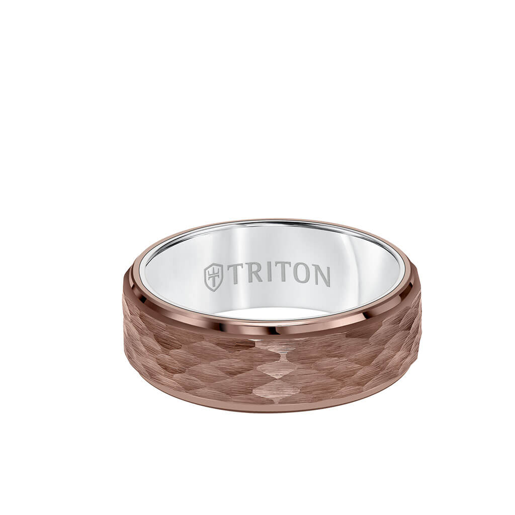 8MM Espresso Tungsten Carbide Ring - Hammered Center and Step Edge