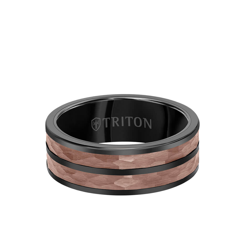 8MM Espresso Tungsten Carbide Ring - Hammered Split Center