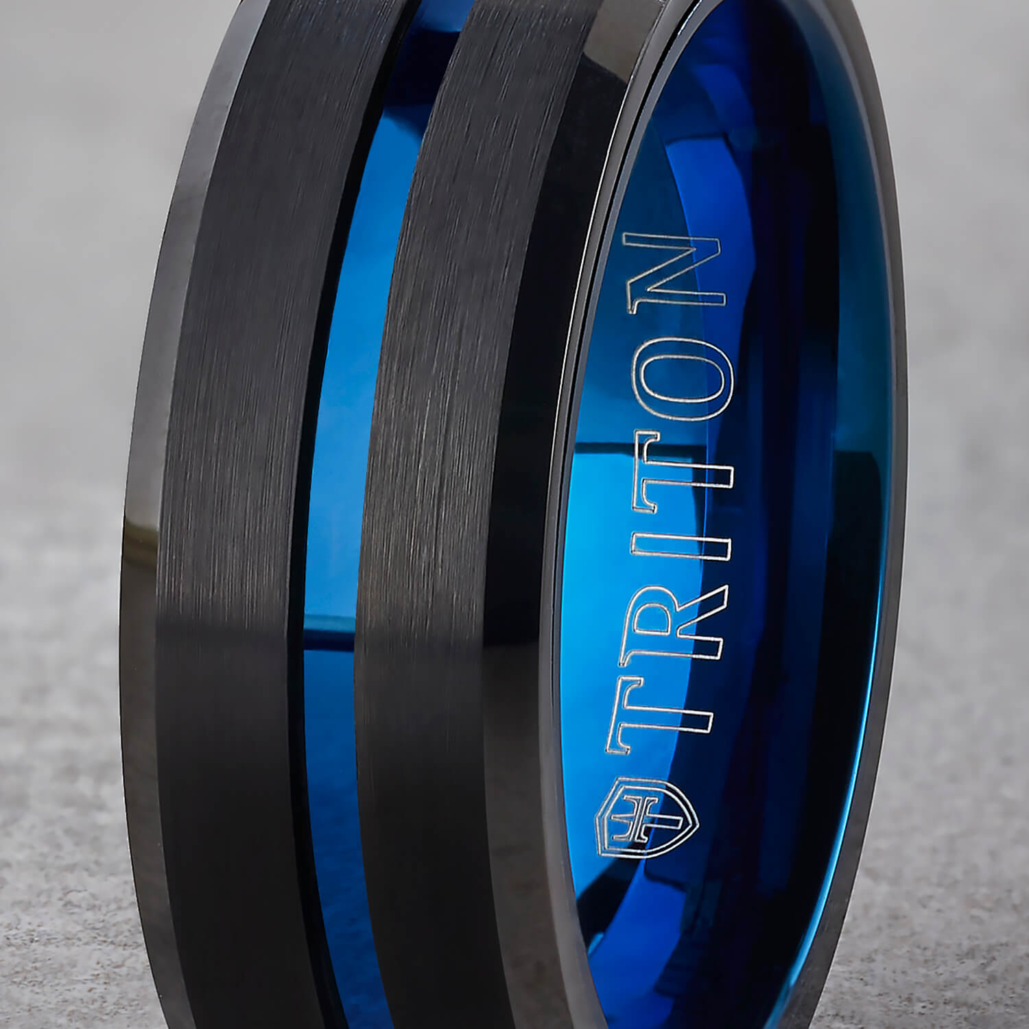 Triton’s Tungsten Carbide TC.850™ material is a uniquely forged metal that is perfect for a man’s active lifestyle. It’s durable, scratch-resistant and will maintain its finish over time with normal use. Triton’s Tungsten Carbide TC.850™ is a patented formula consisting of approximately 85% Tungsten Carbide, yielding a strong, heavyweight, hypoallergenic and tarnish resistant material.