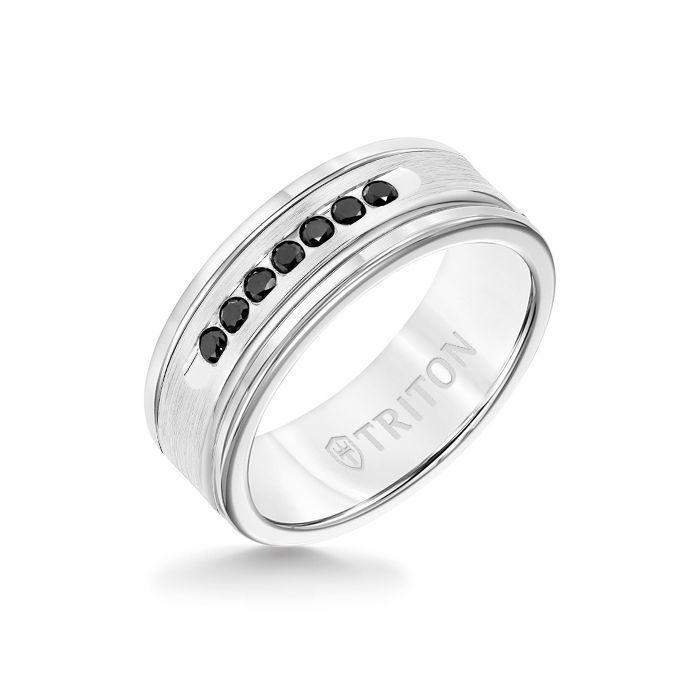 8MM White Tungsten Carbide Ring - Black Diamonds 14K White Gold Insert with Round Edge