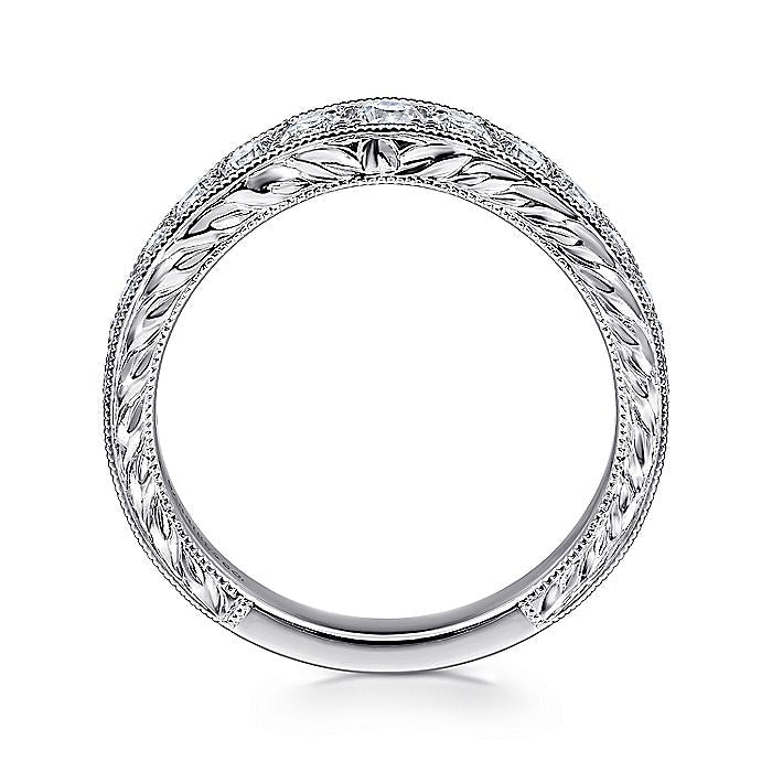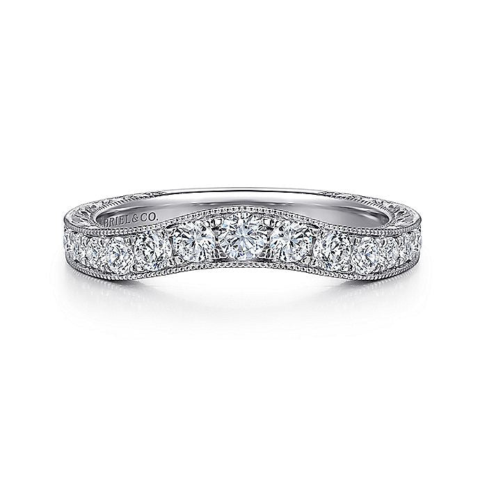 Gabriel & Co. AN10961W44JJ Vintage Inspired 14K White Gold Curved Channel Set Diamond Wedding Band with Engraving