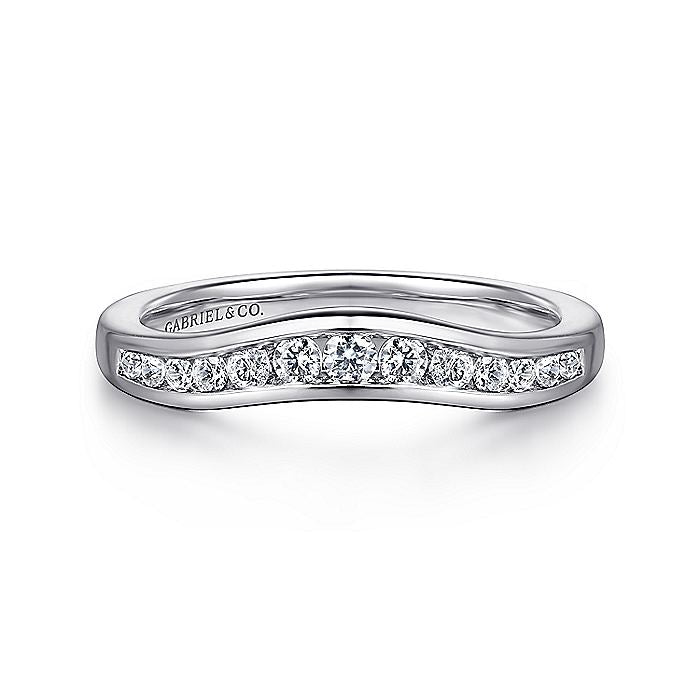 Gabriel & Co. AN10962W44JJ Curved 14K White Gold Channel Set Diamond Wedding Band