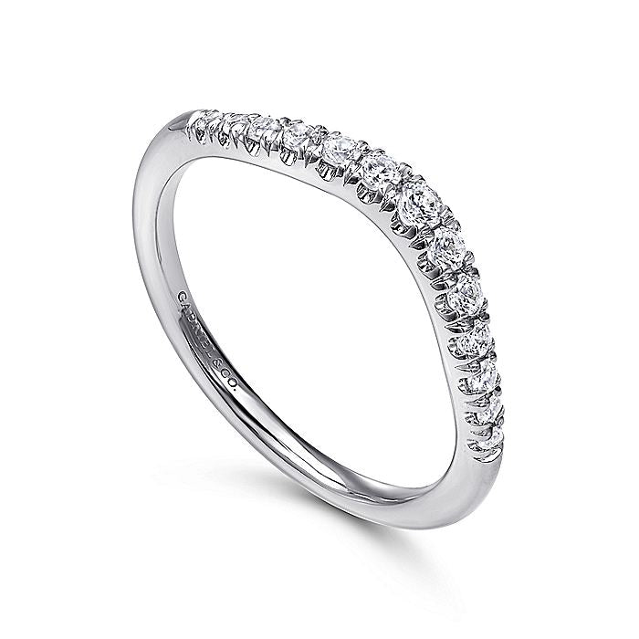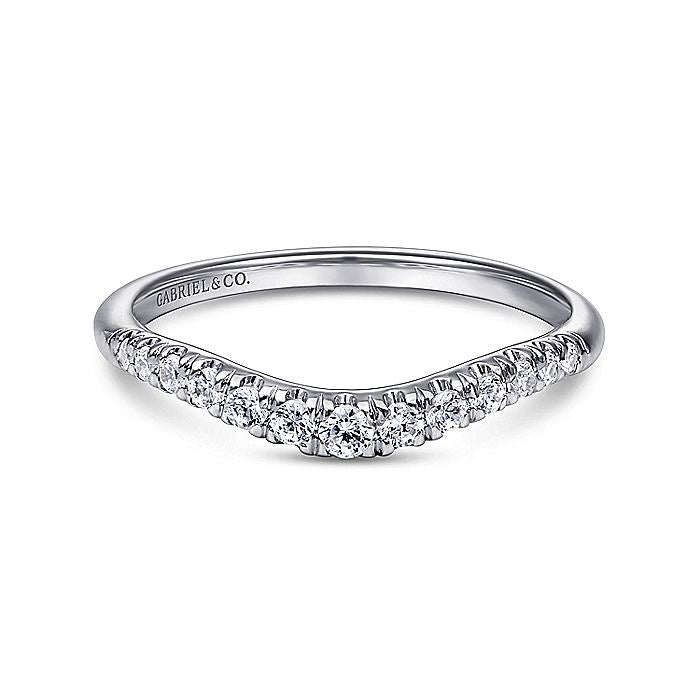 Gabriel & Co. AN10963W44JJ Curved 14K White Gold French Pavé Diamond Wedding Band
