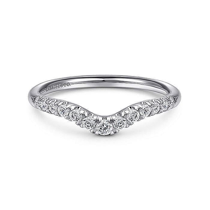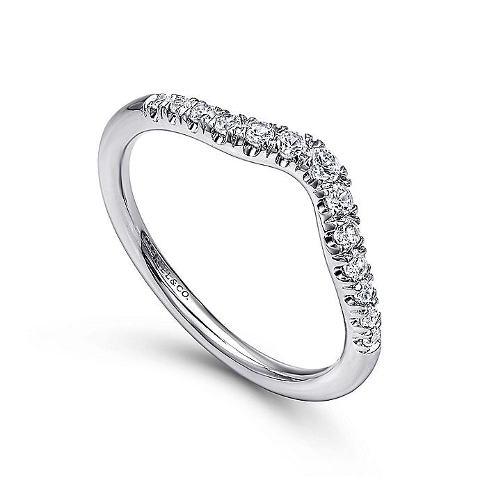 Gabriel & Co. AN10974W44JJ Curved 14K White Gold French Pavé Diamond Wedding Band
