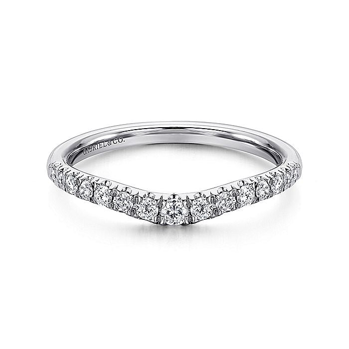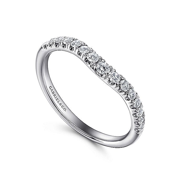Gabriel & Co. AN11013W44JJ Curved 14K White Gold French Pavé Diamond Wedding Band