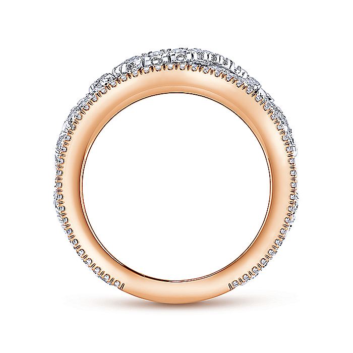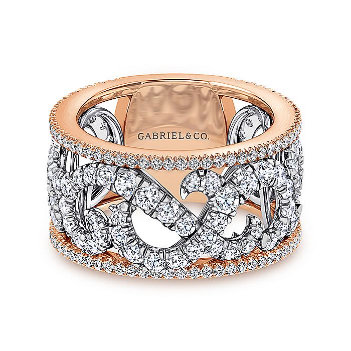 Gabriel & Co. AN12421T44JJ Wide 14K White and Rose Gold French Pavé Set Scrollwork Design Diamond Ring