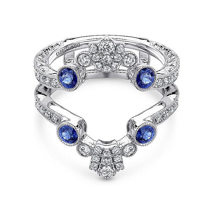 Gabriel & Co. AN13694M-W44SA Vintage 14K White Gold Sapphire and Diamond Ring Enhancer