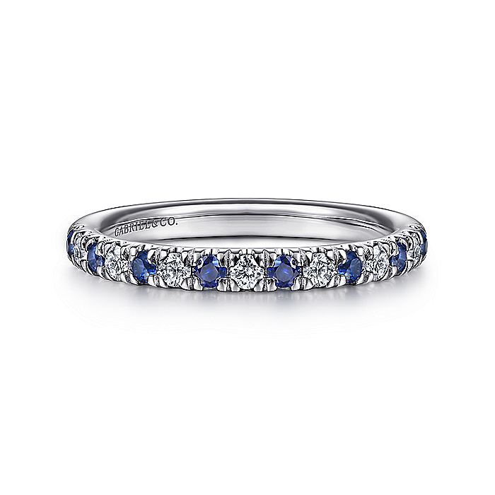 Gabriel & Co. AN14190W44SA 14K White Gold 15 Stone Diamond and Sapphire Anniversary Band