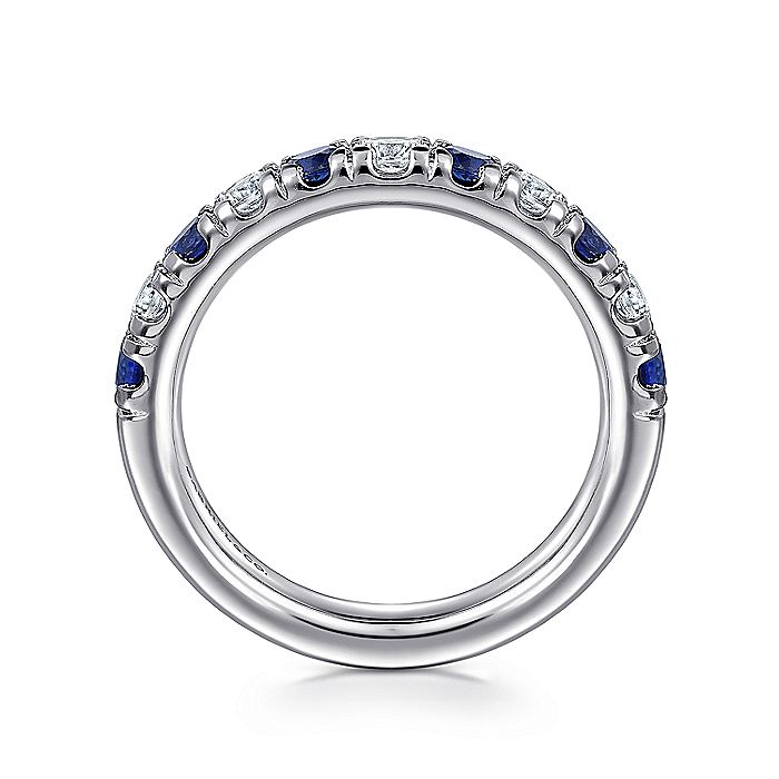 Gabriel & Co. AN14192W44SA 14K White Gold 11 Stone Diamond and Sapphire Anniversary Band