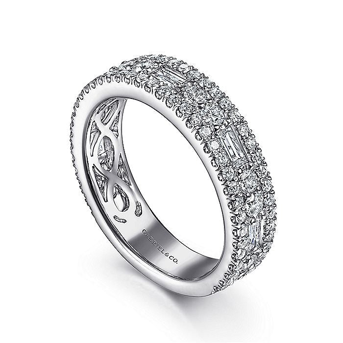 Gabriel & Co. AN15294W44JJ Wide 14K White Gold Round and Baguette Diamond Anniversary Band