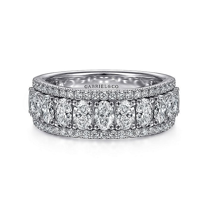 Gabriel & Co. AN15317W44JJ Wide 14K White Gold Oval and Round Diamond Anniversary Band