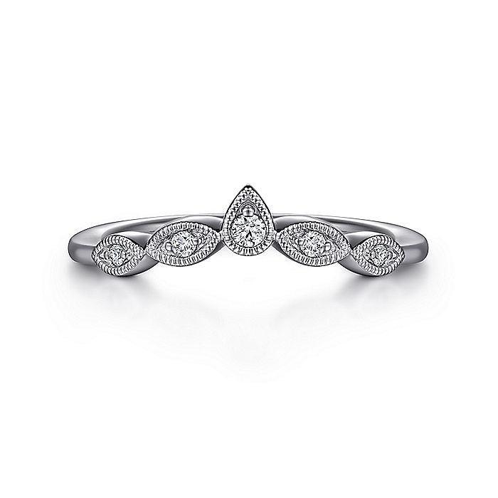 14K White Gold Curved Pear Shape and Round Diamond Anniversary Band