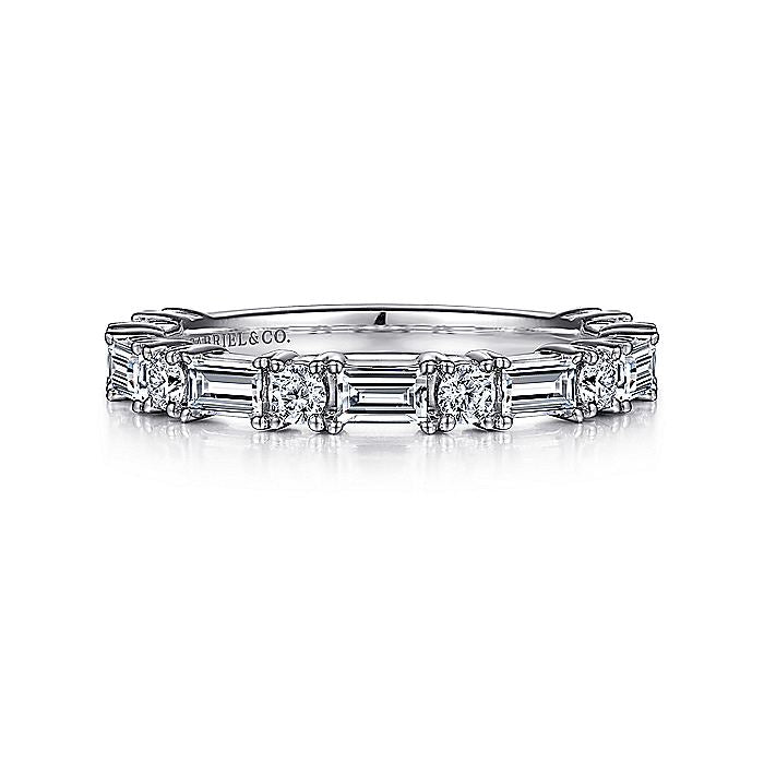 Gabriel & Co. AN15578W44JJ 14K White Gold Baguette and Round Diamond Anniversary Band