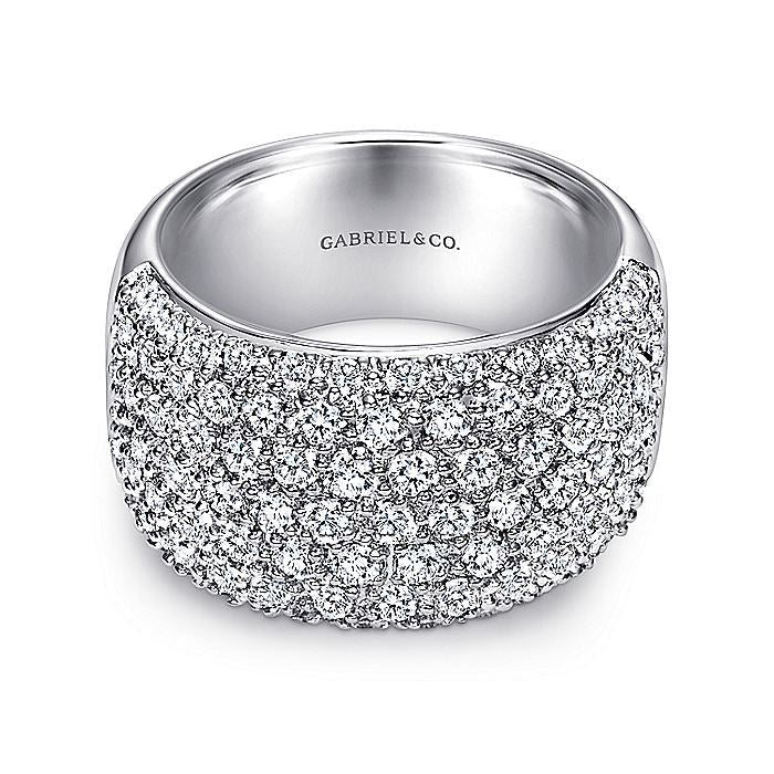 Gabriel & Co. AN3015W44JJ Wide 14K White Gold Pavé Diamond Anniversary Band