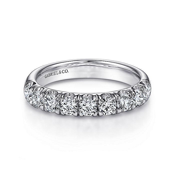 Gabriel & Co. AN6070W44JJ 14K White Gold 9 Stone French Pavé Diamond Wedding Band
