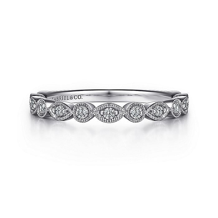 Gabriel & Co. AN8386W44JJ Vintage Inspired 14K White Gold Marquise and Round Station Diamond Anniversary Band
