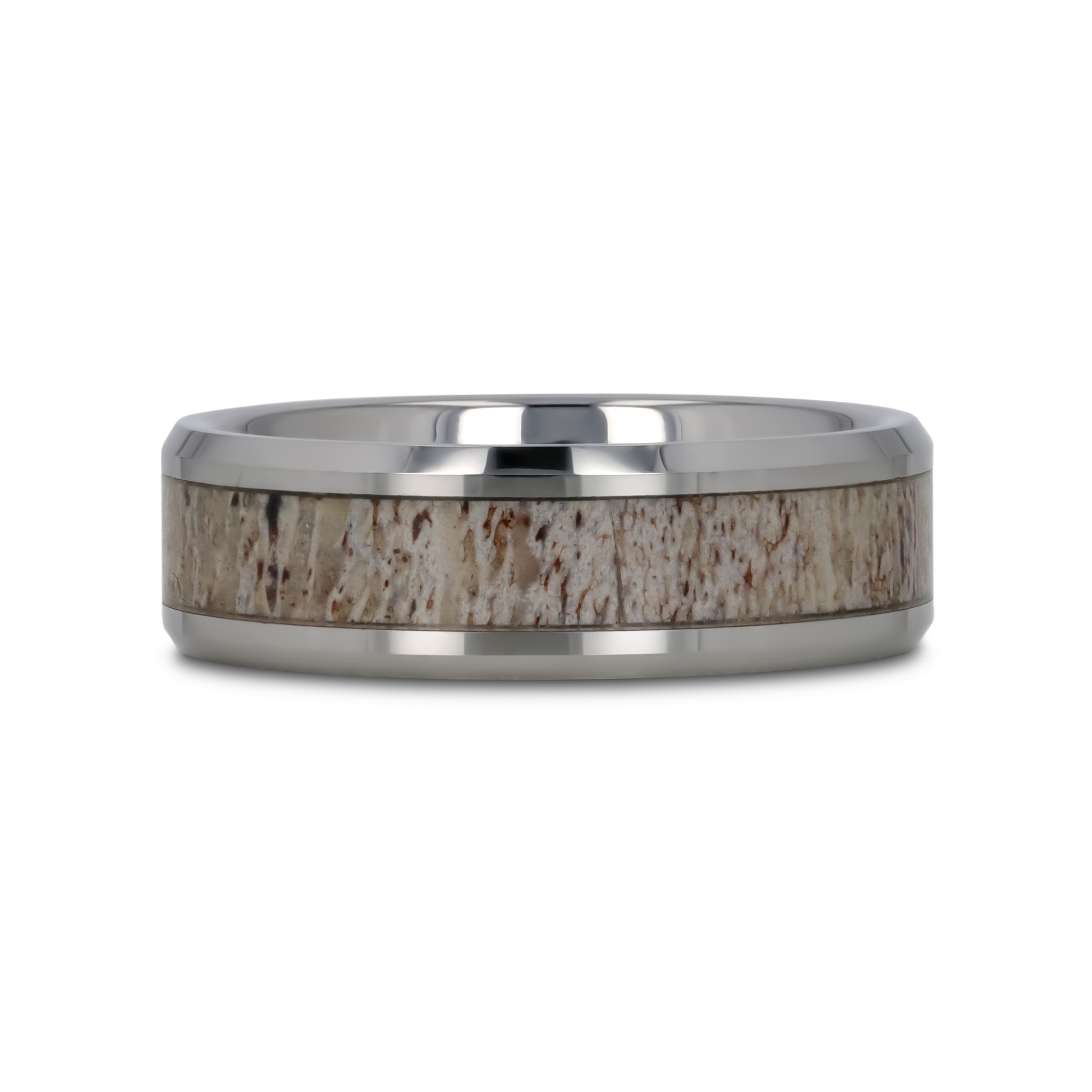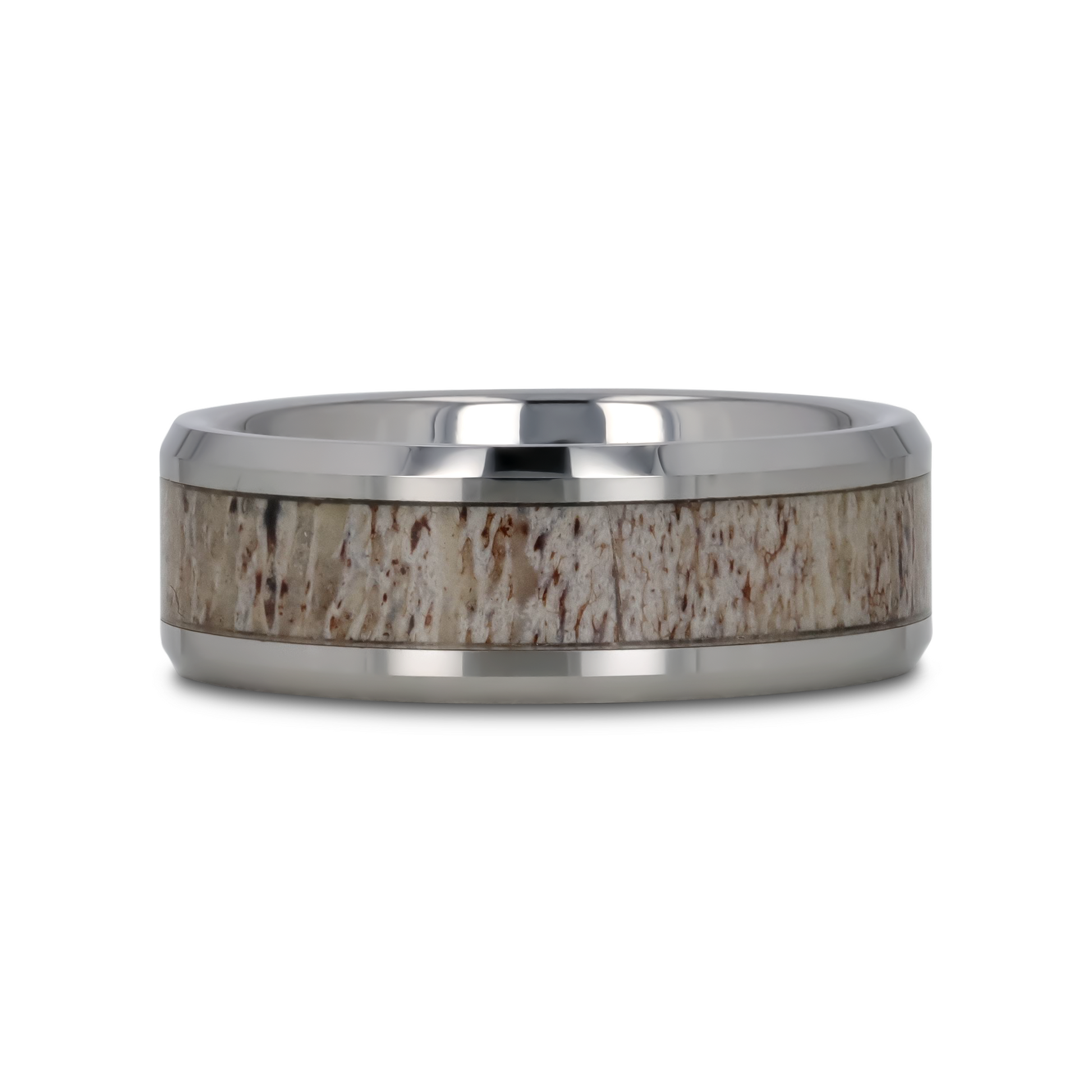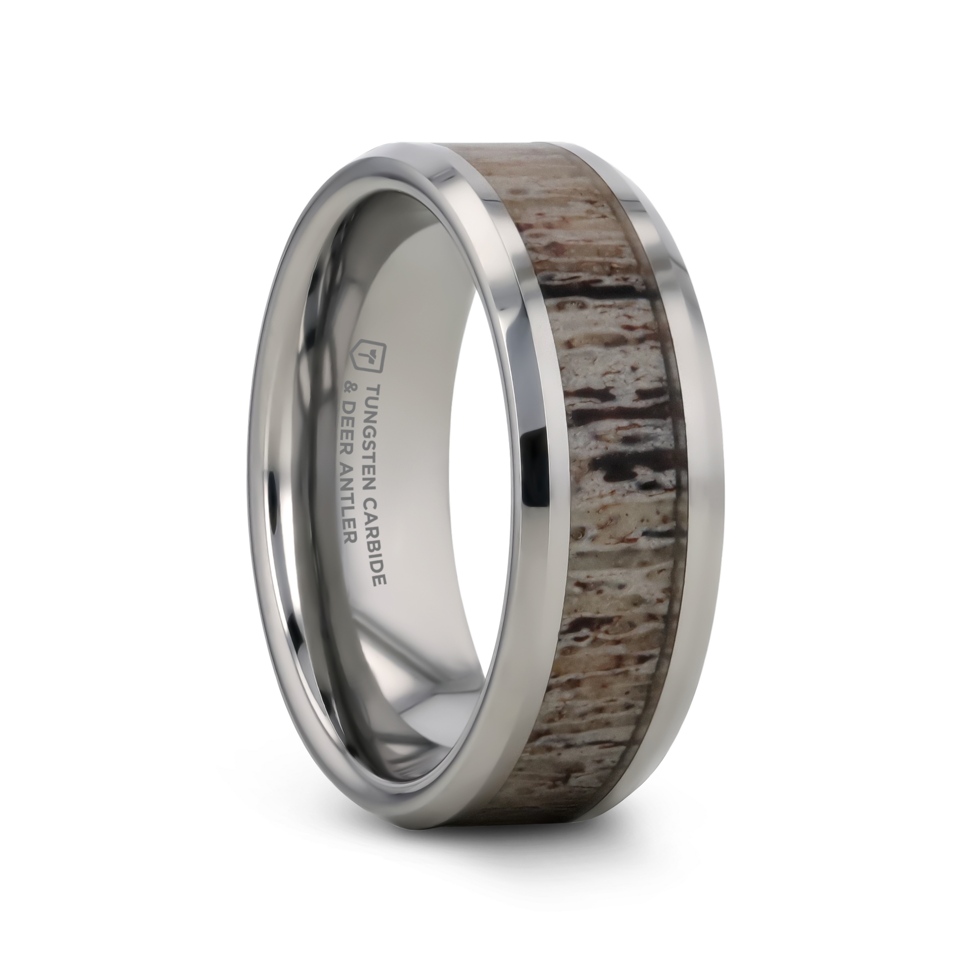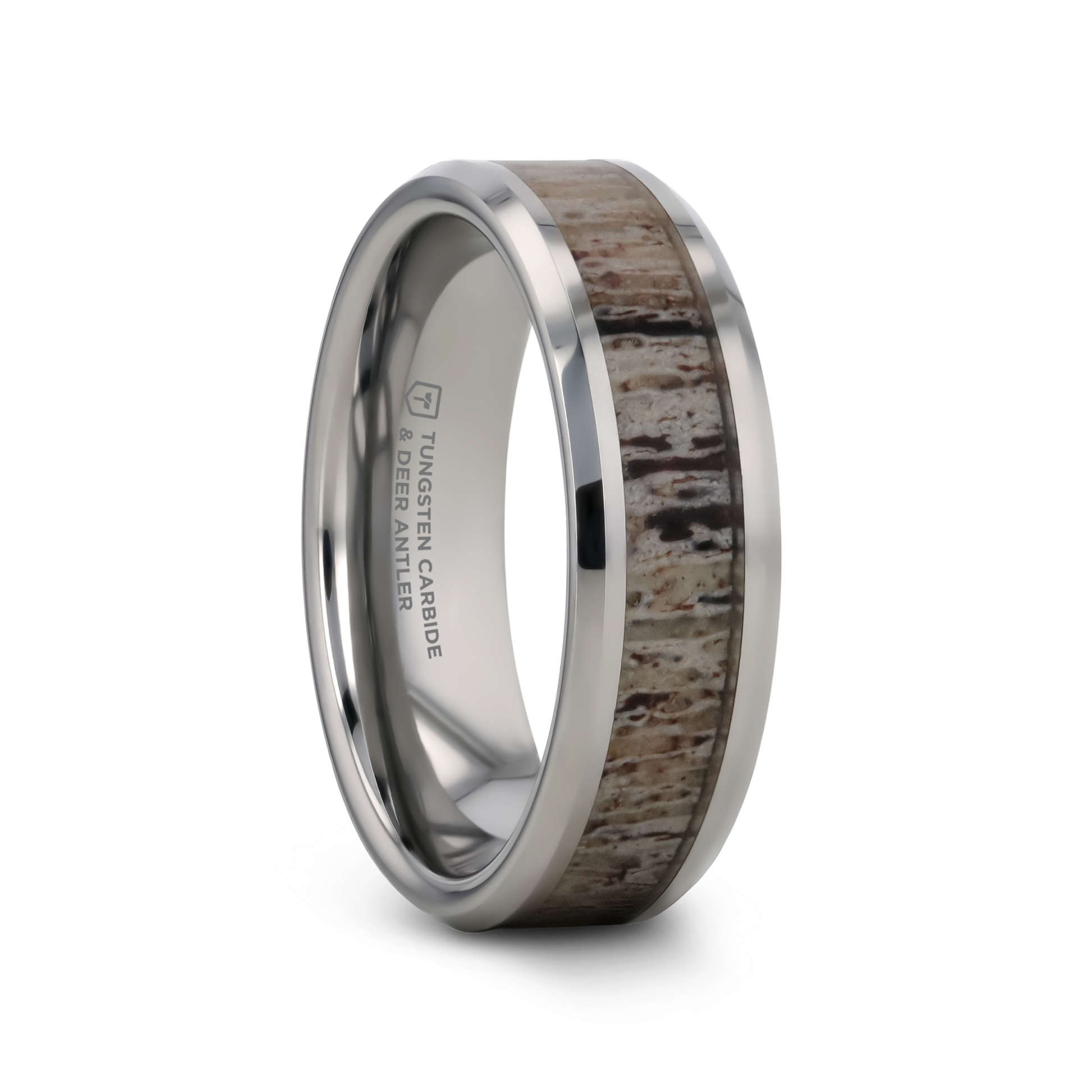 BUCK Polished Beveled Tungsten Carbide Men's Wedding Band with Ombre Deer Antler Inlay - 6mm & 8mm